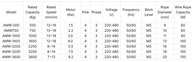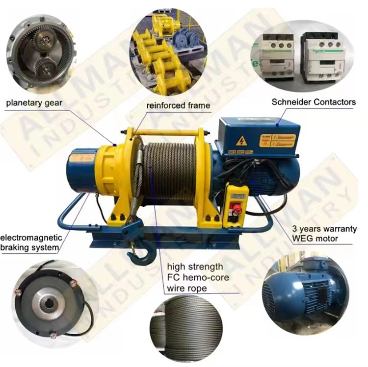 Nós temos nossa própria fábrica, produzindo guincho de cabo elétrico, a capacidade inclui 500kg, 750kg, 1000kg, 1600kg, 2 toneladas, 3 toneladas, 5 toneladas e 10 toneladas. A tensão de alimentação pode ser 220V, 380V, 440V para a escolha do cliente, também pode ser aceita personalizada.
