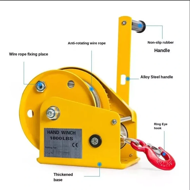 A BaiYi Hoisting Machinery, como fabricante especializada em acessórios para Ragging na China, oferece um guincho manual de alta qualidade, puramente manual e altamente eficiente. Ele usa um sofisticado sistema de engrenagens para multiplicar a força da sua mão e levantar milhares de quilos com facilidade. Quer se trate de resgate ao ar livre, trabalho agrícola ou construção, funciona.