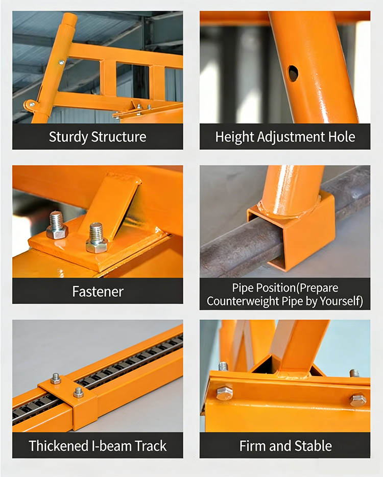 Instalação do contrapeso:Adicione tubos de contrapeso (fornecidos pelo usuário) nos pontos de penetração dos tubos nas colunas para garantir a estabilidade do centro de gravidade do equipamento e evitar tombamento.