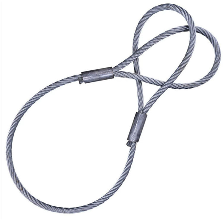 Pressione as duas extremidades de um cabo de aço junto com as mangas para formar um laço contínuo. Este é o tipo mais comumente usado com aplicações extremamente amplas.